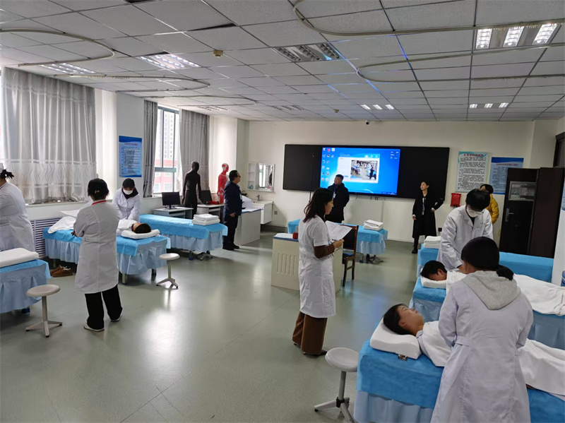 本次认定考核分为理论考核与实操考核,其中实操考核依据国家职业技能标准、职业技能等级认定规范,充分考察考生的育婴、养老护理、保健按摩等综合能力。2022级、2023级护理、康复技术专业的342名考生参加本次中级工认定考核。