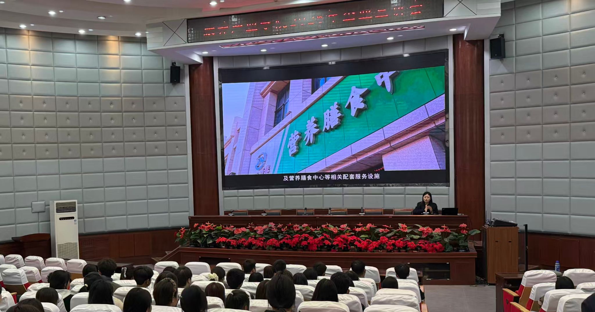2026年3月30日,甘肃八冶医养公司直属党支部副书记、工会主席郭建平一行来校开展实习招聘专场宣讲会。康养学院院长谢会平、专业教师及2024级康养学院全体学生共计170余人参加了宣讲会。